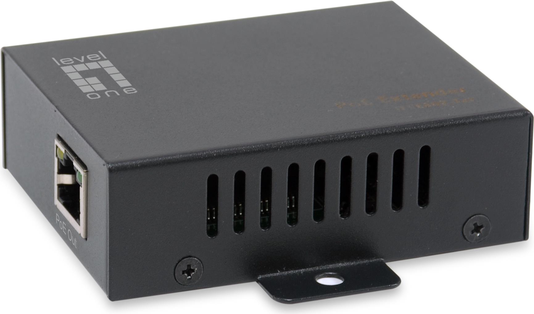 LevelOne 1-Port RJ-45 Gigabit PoE Repeater. Netzstandard: IEEE 802.3, IEEE 802.3af, IEEE 802.3at, IEEE 802.3u, IEEE 802.3x. Produktfarbe: Schwarz, Maximaler Arbeitsabstand: 100 m, Ursprungsland: China. Breite: 84 mm, Tiefe: 65 mm, Höhe: 24 mm. Verpackungsbreite: 125 mm, Verpackungstiefe: 105 mm, Verpackungshöhe: 55 mm. Anzahl enthaltener Produkte: 1 Stück(e) (POR-0111)