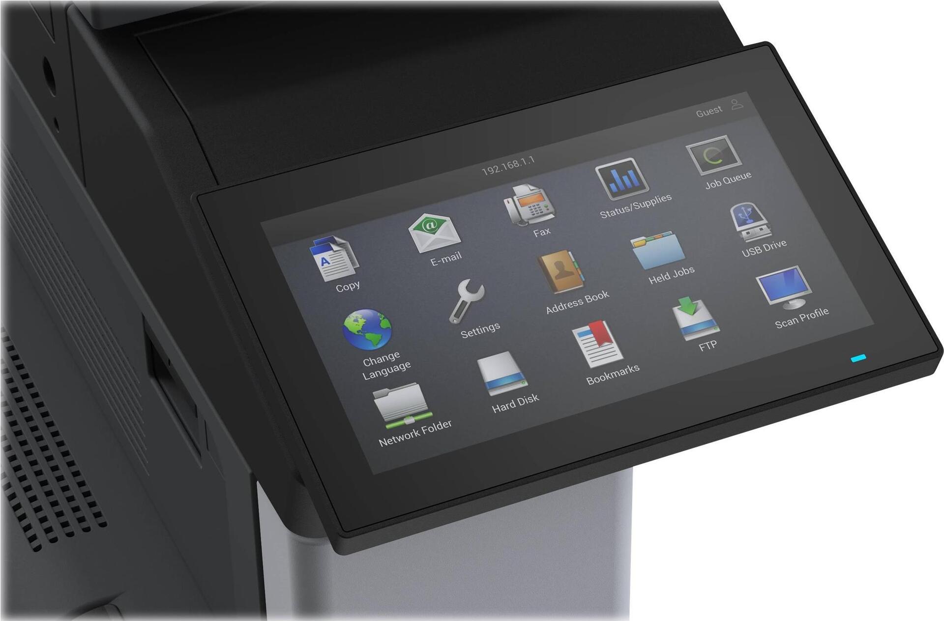 Das großformatige Mono-Multifunktionssystem Lexmark MX931dse bietet Sicherheit, Vielseitigkeit und Leistung für große Arbeitsgruppen mit einer Geschwindigkeit von bis zu 35 Seiten pro Minute. Beidseitiges Scannen und ein 17,78 cm großer, tabletähnlicher Touchscreen machen die Abwicklung Ihrer A3-Druck- und Scanaufträge zum Kinderspiel. Optische Zeichenerkennung (OCR) ist Standard. Es stehen mehrere Optionen für die Medienverwaltung zur Verfügung: ein Briefumschlagfach, eine doppelte Auffangablage, einen Hefter-Finisher und einen Hefter-Locher-Finisher. Integrierte Workflowlösungen wie Scan Center für die einfache Weiterleitung von Dokumenten sowie Software-Allianzlösungen bieten eine Vielzahl von Erfassungs- und Druckanwendungen, um Ihre Geschäftsprozesse auf das Gerät auszuweiten.