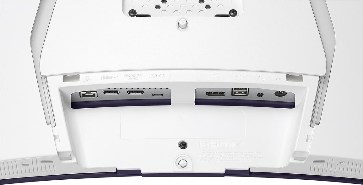 1x DisplayPort 1.4 (240Hz@3440x1440), 1x HDMI 2.1 (eARC, 240Hz@3440x1440), 1x HDMI 2.1 (240Hz@3440x1440), 1x USB-C 2.0 mit DisplayPort 1.4 (Upstream, 480Mb/?s, PD-Out 65W), 2x USB-A 2.0 (Downstream, 480Mb/?s), 1x 3.5mm Klinke Line-Out, 1x RJ-45 (Downstream, 100Base-T), 1x DC-In Hohlbuchse (Netzanschluss) |