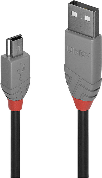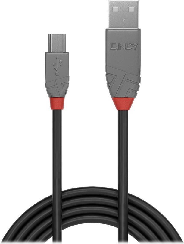 Lindy Anthra Line - USB-Kabel - USB (M) bis Mini-USB, Typ B (M) - USB 2.0 - 20 cm - rund - Schwarz