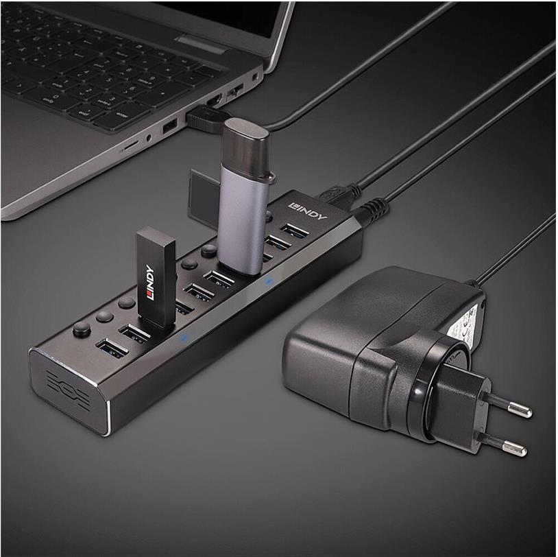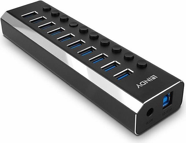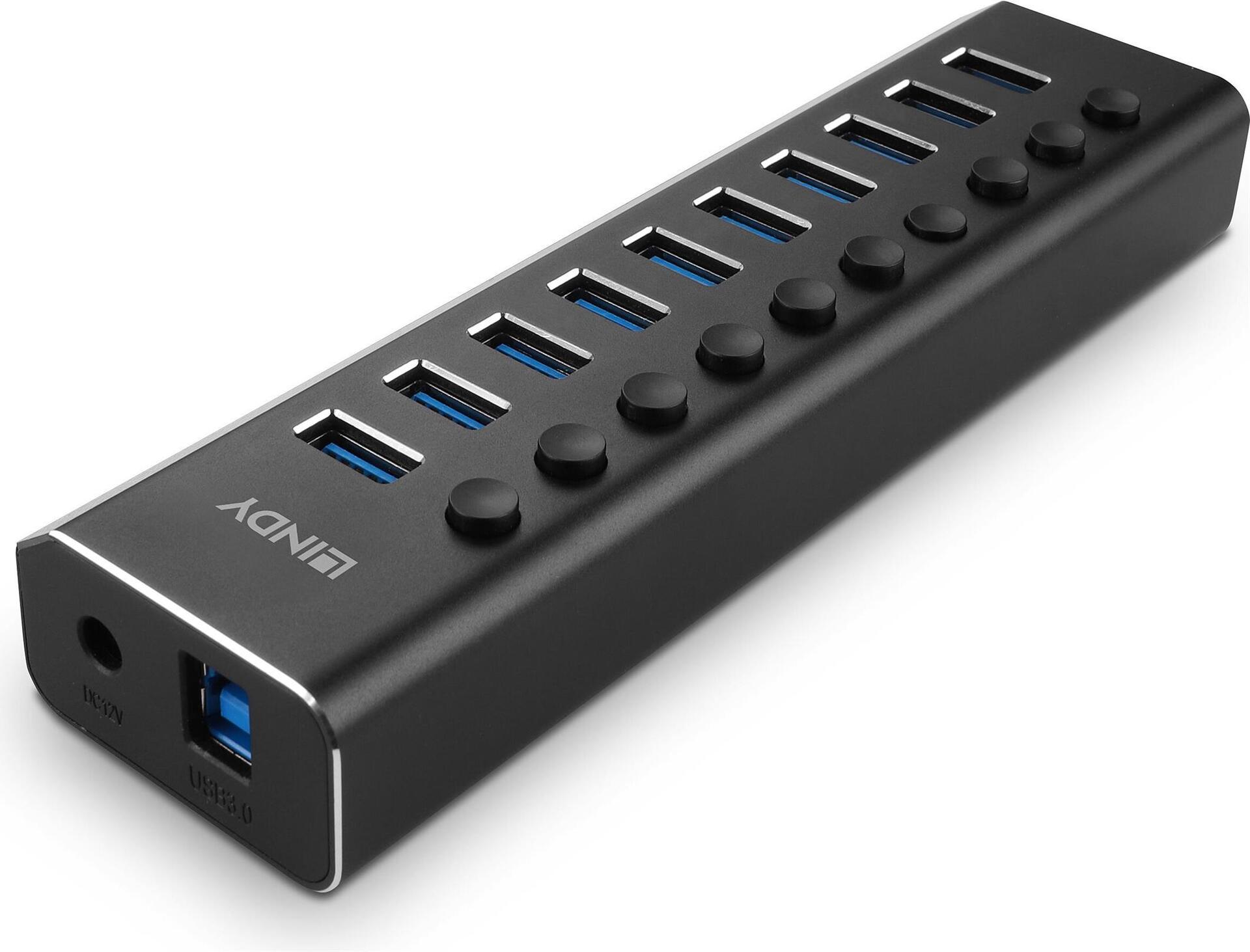 Lindy - Hub - mit Ein-/Aus-Schaltern - 10 x SuperSpeed USB3.0 - Desktop (43370)