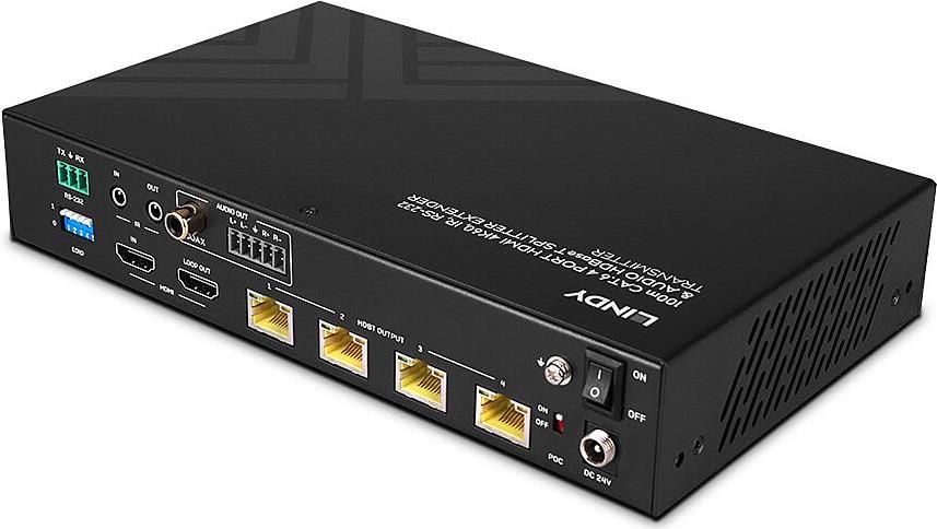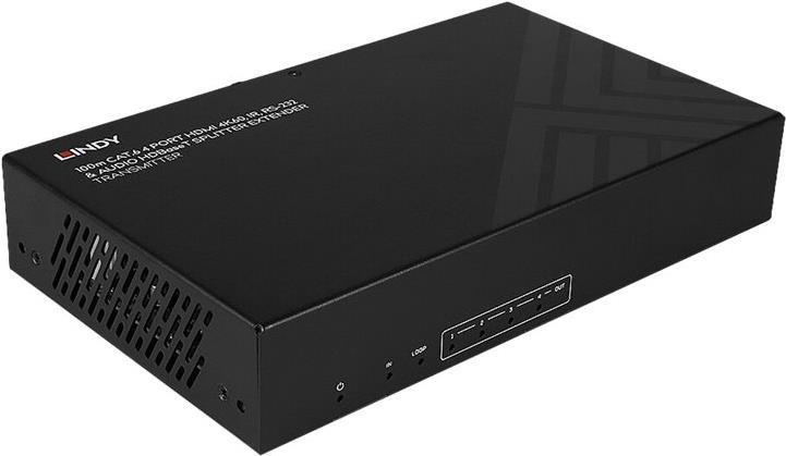 Lindy 100m Cat.6 4 Port HDMI 4K60 HDBaseT Splitter Extender HDBaseT Transmitter mit eingebautem 4-Port-Splitter und PoC-Funktion (38355)