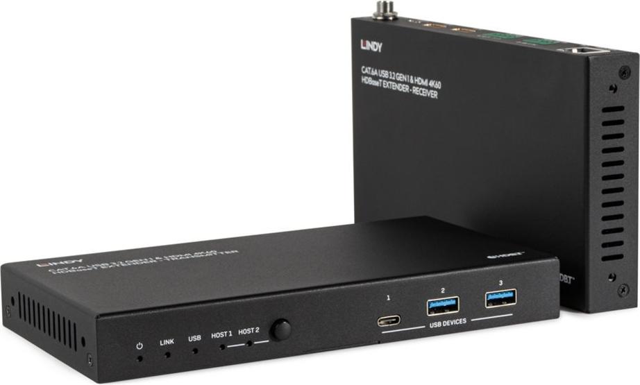 Lindy 100m Cat.6A 2 Host USB 3.2 Gen 1 & HDMI 4K60 HDBaseT Extender (39365)