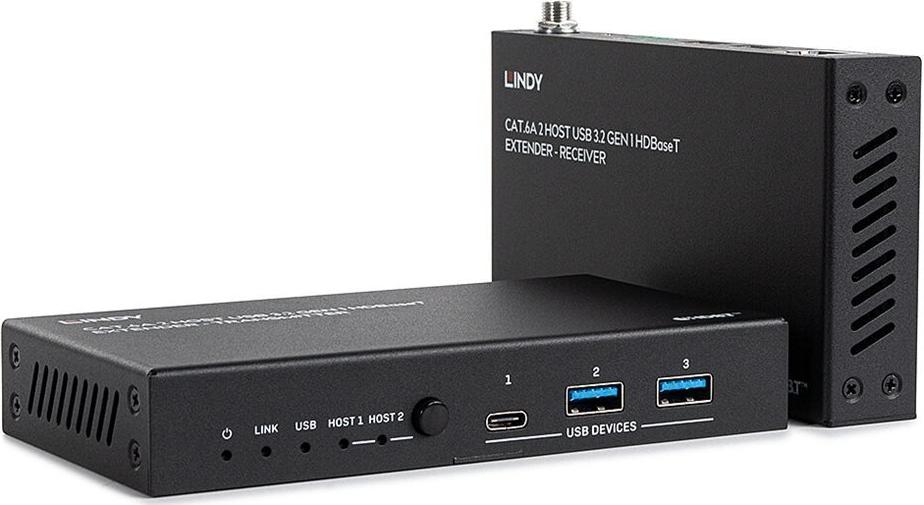 Lindy 100m Cat.6A 2 Host USB 3.2 Gen 1 HDBaseT Extender (43421)