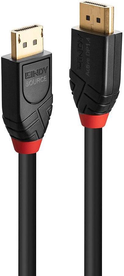 Lindy - DisplayPort-Kabel - DisplayPort (M) bis DisplayPort (M) - DisplayPort 1,4 - 10,0m - rund, aktiv, unterstützt 8K 60 Hz (7680 x 4320), unterstützt 4K 144 Hz (4096 x 2160) - Schwarz (41169)