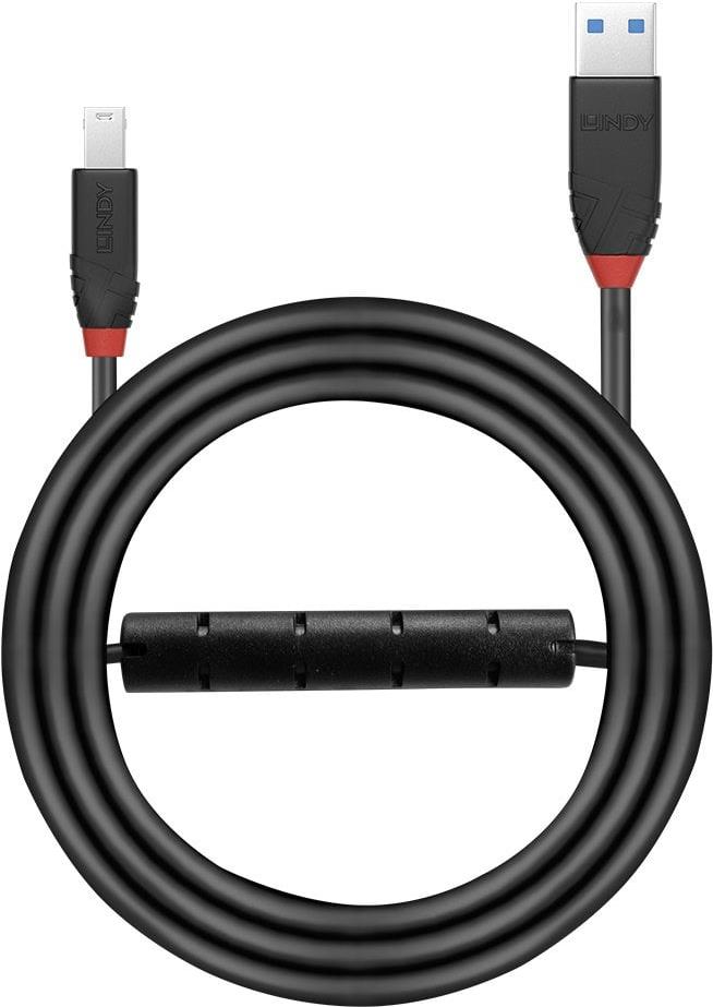 Lindy - USB-Kabel - USB Typ A (M) bis USB Type B (M) - USB 3,1 Gen1 - 10,0m - rund, aktiv - Schwarz (43227)