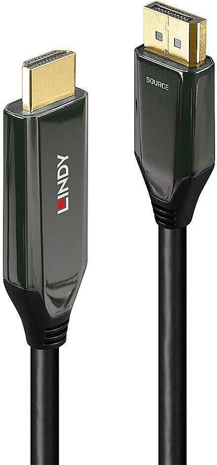 Lindy - Adapterkabel - DisplayPort männlich zu HDMI männlich - 1,0m - abgeschirmt - Schwarz - rund, unterstützt 8K 60 Hz (7680 x 4320), unterstützt 4K 120 Hz (4096 x 2160) (40930)