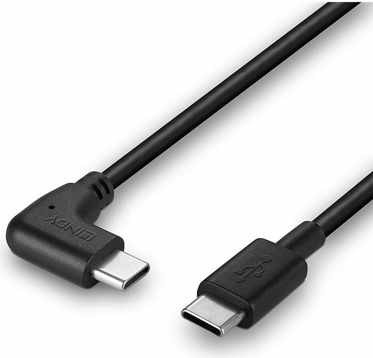 Lindy - USB-Kabel - 24 pin USB-C (M) gerade zu 24 pin USB-C (M) nach rechts abgewinkelt - USB 2,0 - 1,0m - rund - Schwarz (32005)