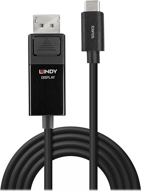 Lindy - Adapterkabel - USB-C (M) zu DisplayPort (W) - DisplayPort 1.2 - 1 m - rund, unterstützt 4K 60 Hz (3840 x 2160) - Schwarz