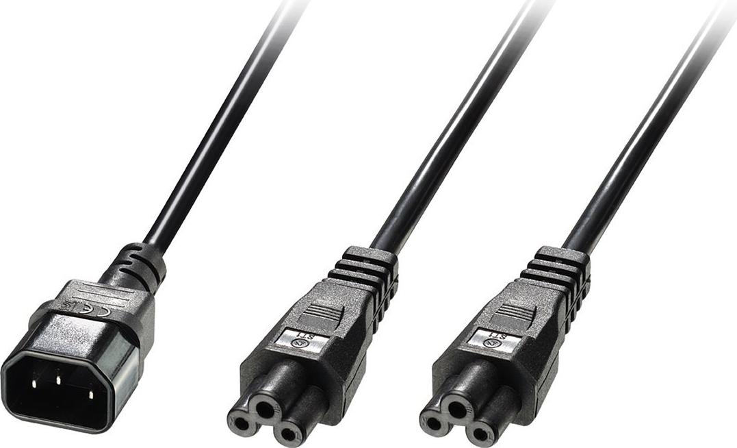 IEC C14 Kaltgerätestecker an 2x IEC C5 Kaltgerätebuchse.