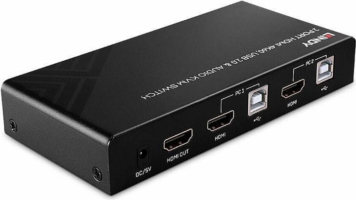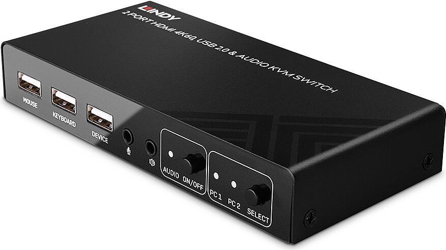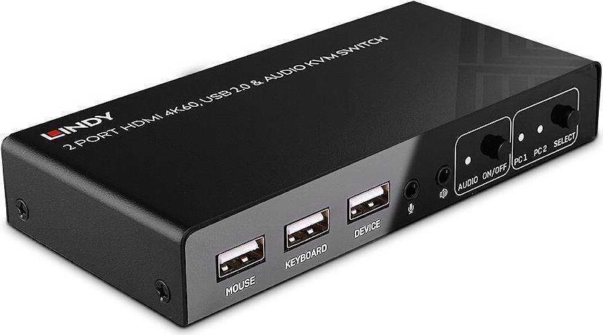 Lindy 2 Port KVM Switch HDMI 4K60, USB 2.0 & Audio Schaltet zwischen 2 HDMI PCs von einer einzigen Konsole (Tastatur, Maus, Monitor) aus um (32809)