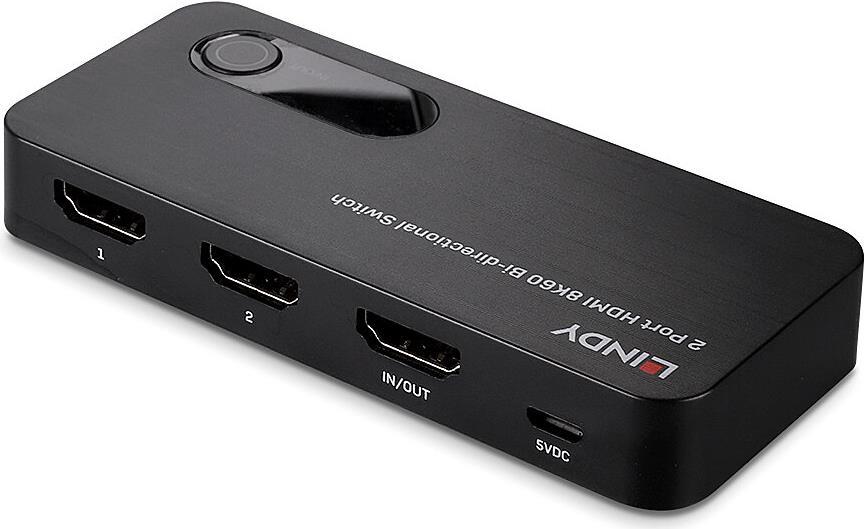 Lindy 2 Port HDMI 8K60 Bidirektionaler Switch Zum Umschalten zwischen zwei 8K HDMI-Quellen, die mit einem 8K Display verbunden sind, oder zwei 8K Displays, die mit einem 8K Quellgerät verbunden sind (38339)