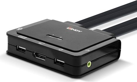 Lindy 2 Port DisplayPort 1.2, USB Typ C, USB 2.0 & Audio Cable KVM Switch Steuern eines DisplayPort-PCs und eines USB Typ C Laptops mit einer Konsole (42346)