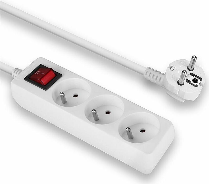 Mit dieser 3-fach Steckdosenleiste für das französische Stromversorgungsnetz können bis zu 3 Geräte mit einer maximalen Gesamtleistung von 3680W versorgt werden.