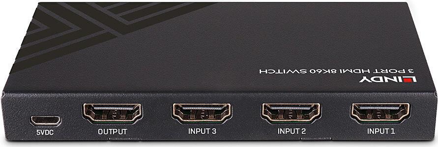 Lindy 3 Port HDMI 8K60 Switch - Zum umschalten zwischen drei 8K@60Hz Quellgeräten - die an ein Display angeschlossen sind (38369)