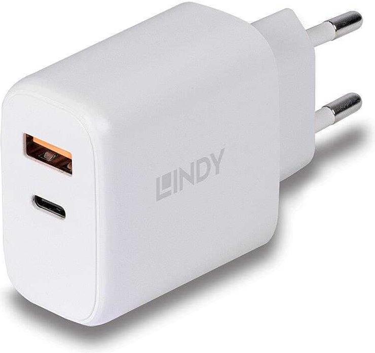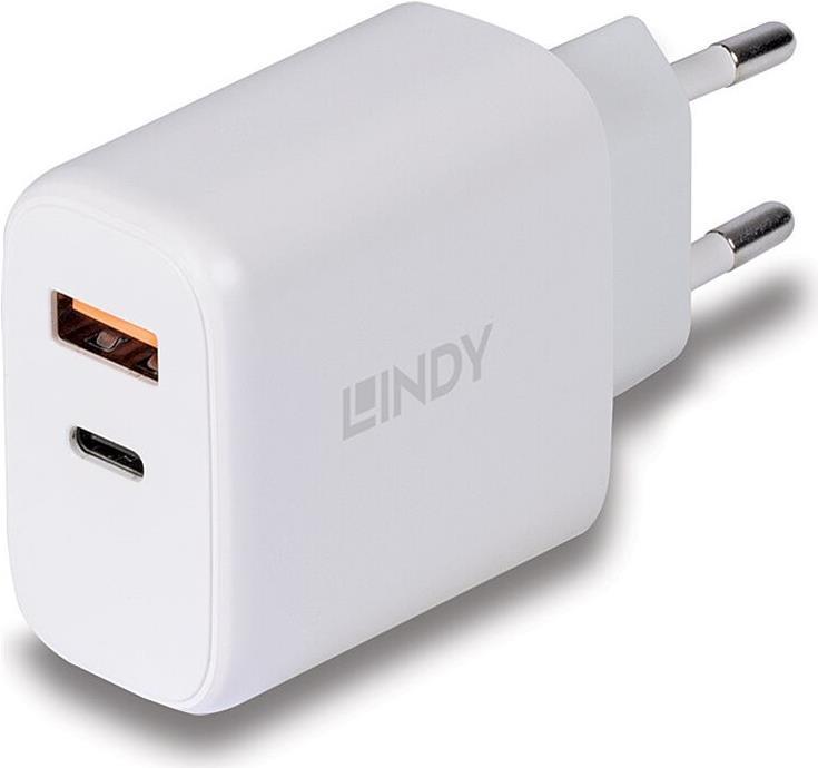 Lindy - Netzteil - 30 Watt - 3 A - PD 3.0 - 2 Ausgabeanschlussstellen (4-polig USB Typ A / 24-polig USB-C) - weiß (73424)