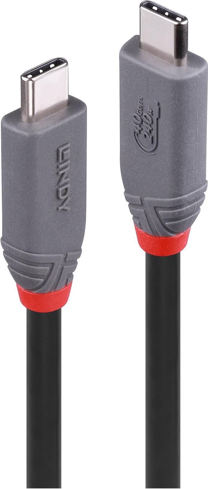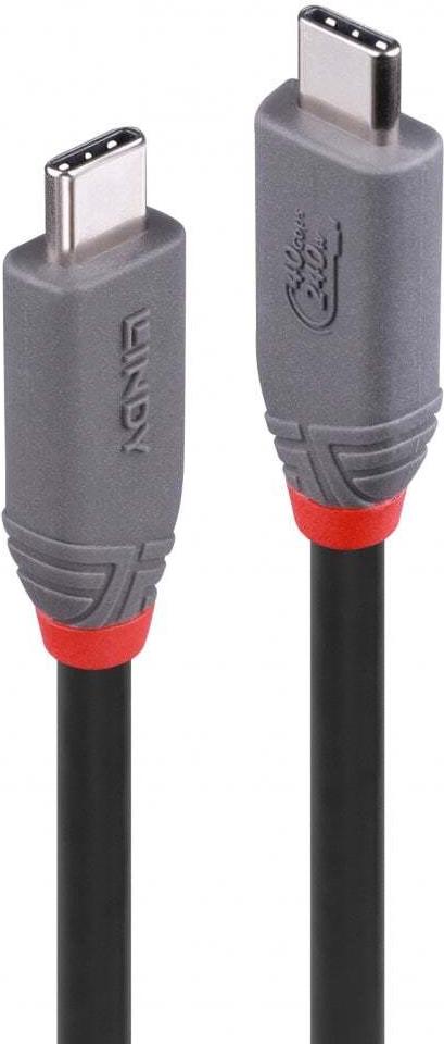 Lindy Anthra Line - USB-Kabel - 24 pin USB-C (M) zu 24 pin USB-C (M) - USB4 Gen3x2 5 A - 2,0m - unterstützt 4K 60 Hz (3840 x 2160), unterstützt 8K 60 Hz (7680 x 4320) - Schwarz (36958)