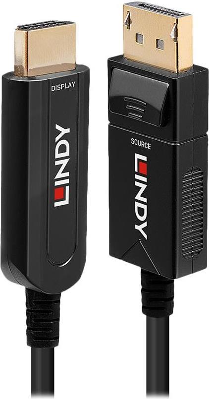 Lindy - Video- / Audiokabel - DisplayPort (M) bis HDMI (M) - 20,0m - Hybrid Kupfer/Kohlefaser - Schwarz - rund, 4K Unterstützung (38491)