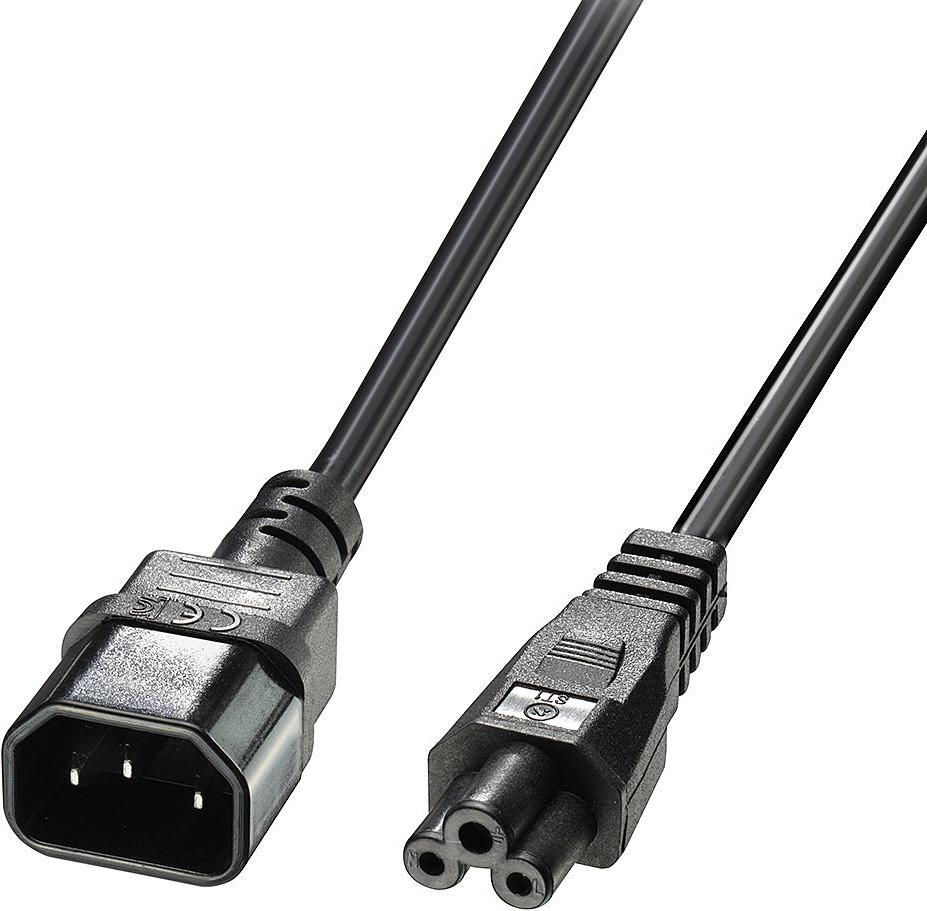 IEC C5 Kaltgerätebuchse an IEC C14 Kaltgerätestecker.