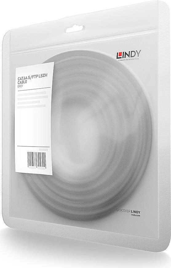 Lindy - Patch-Kabel - RJ-45 (M) zu RJ-45 (M) - 50,0m - 6 mm - S/FTP - CAT 6a - halogenfrei, ohne Haken - Grau (47142)