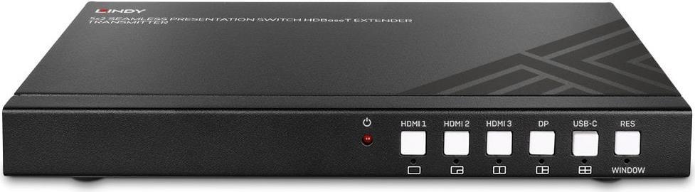 | Schnittstellen | 3 x HDMI (Eingang) weiblich 1 x DisplayPort (Eingang) weiblich 1 x USB-C (Eingang) weiblich HDBaseT (Ausgang) - RJ-45 weiblich HDMI (Ausgang) weiblich Audio (Ausgang) - Phone 3,5 mm weiblich |
