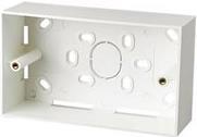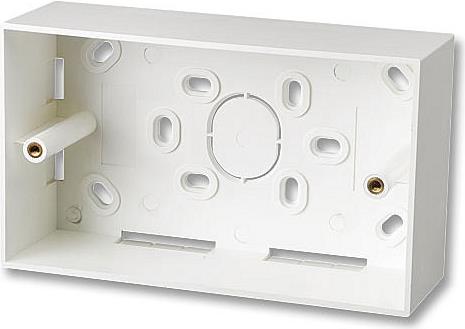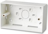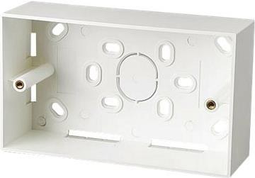 Aufputzrahmen für Blenden der modularen Wanddosenserie in der Größe 146x86mm Doppel-Wanddosen UK, in Kunststoff weiß, RoHS und UL kompatibel.