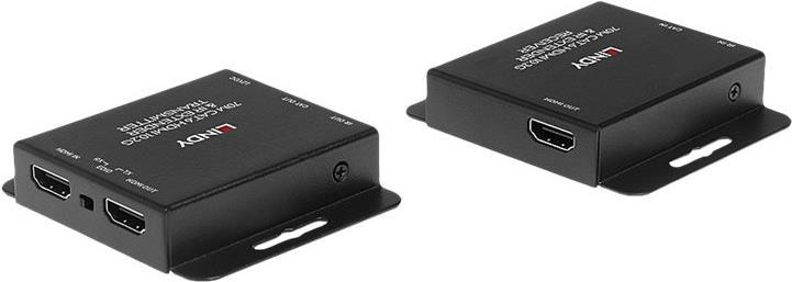 Überträgt HDMI -10.2G- & IR-Signale auf Distanzen bis 70m über Cat.6-Kabel.