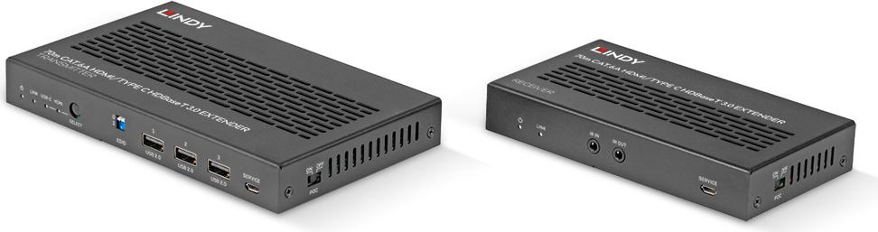Lindy 70m Cat.6A TypeC & HDMI HDBaseT 3.0 KVM Extender (38346)