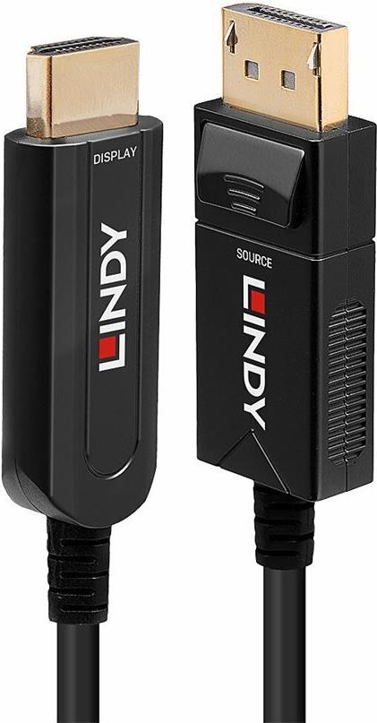 Lindy - Video- / Audiokabel - DisplayPort (M) bis HDMI (M) - 10,0m - Hybrid Kupfer/Kohlefaser - Schwarz - rund, 4K Unterstützung (38490)