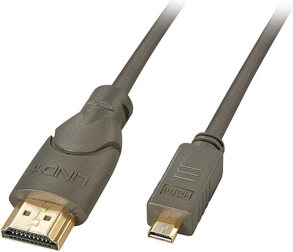 Lindy High-Speed-HDMI®-Kabel, Typ A/D (Micro), 0,5m Monitorkabel mit Micro HDMI Typ D Stecker an HDMI Typ A Stecker (19-polig, vergossen) für digital angesteuerte Monitore, Projektoren, Plasma- und LCD-TVs (41350)