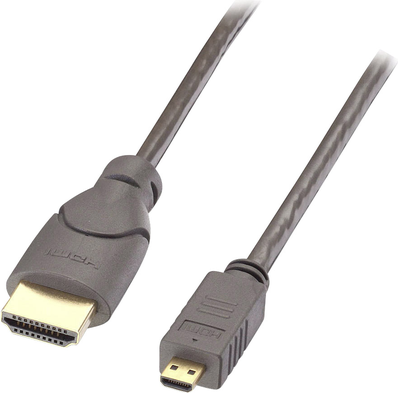 Monitorkabel mit Micro HDMI Typ D Stecker an HDMI Typ A Stecker (19-polig, vergossen) für digital angesteuerte Monitore, Projektoren, Plasma- und LCD-TVs.