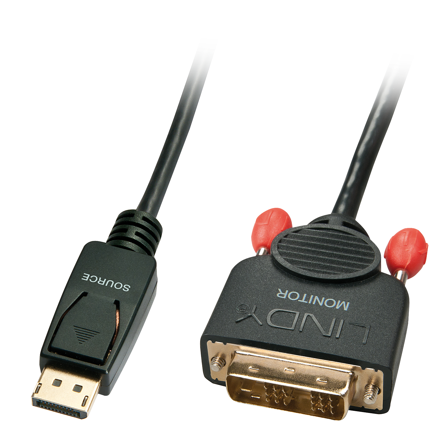 Das Lindy DisplayPort an DVI Kabel eignet sich ideal zum Anschluss eines DisplayPort-Quellgeräts wie PC oder Laptop an ein DVI Display. Es unterstützt HD-Videoauflösungen bis 1920x1200@60Hz.