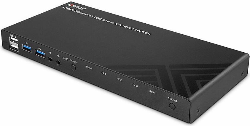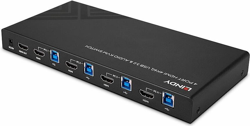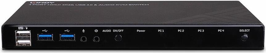 Lindy KVM Switch HDMI 4K60, USB 3.0 & Audio, 4 Port Schaltet zwischen 4 mit HDMI und USB 3.0 Ports ausgestatteten PCs von einer einzigen Konsole (Tastatur, Maus, Monitor) aus um (39313)