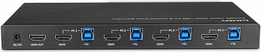Schaltet zwischen 4 mit HDMI und USB 3.0 Ports ausgestatteten PCs von einer einzigen Konsole (Tastatur, Maus, Monitor) aus um.