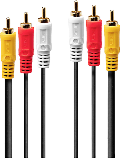Lindy Premium - Video- / Audiokabel - Composite Video / Audio - RCA x 3 (M) bis RCA x 3 (M) - 2,0m - abgeschirmt - Schwarz (35691)