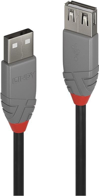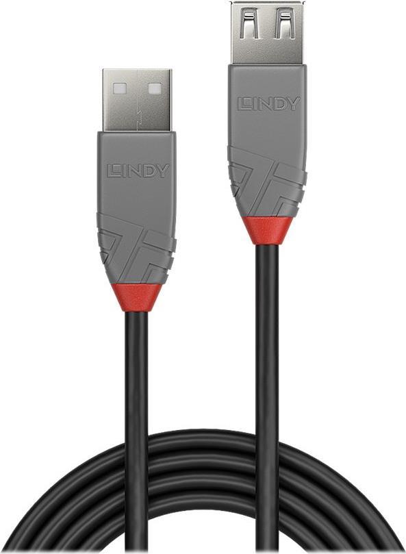 Lindy Anthra Line - USB-Verlängerungskabel - USB (M) bis USB (W) - USB2.0 - 1,0m - rund - Schwarz (36702)
