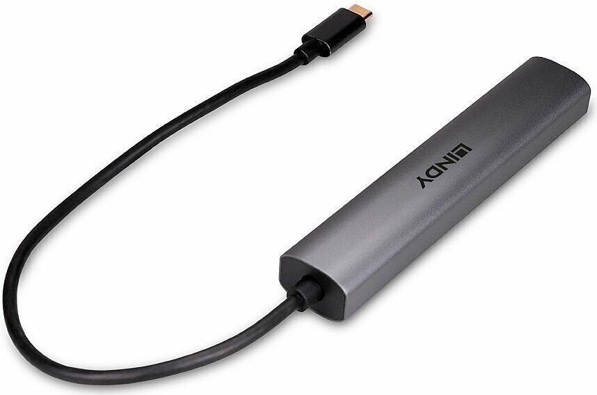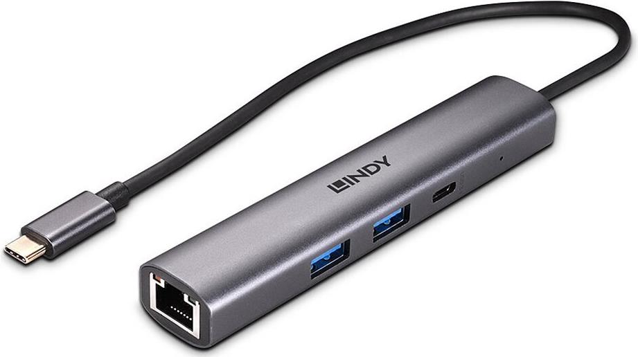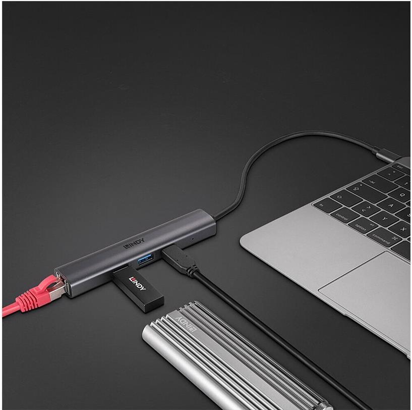 Lindy USB 3.2 Gen 2 Typ C Hub & Gigabit Ethernet Konverter 3 Port USB Typ A & Typ C Hub & Gigabit-Ethernet-Anbindung für Computer mit USB-Anschluss Typ C (43385)