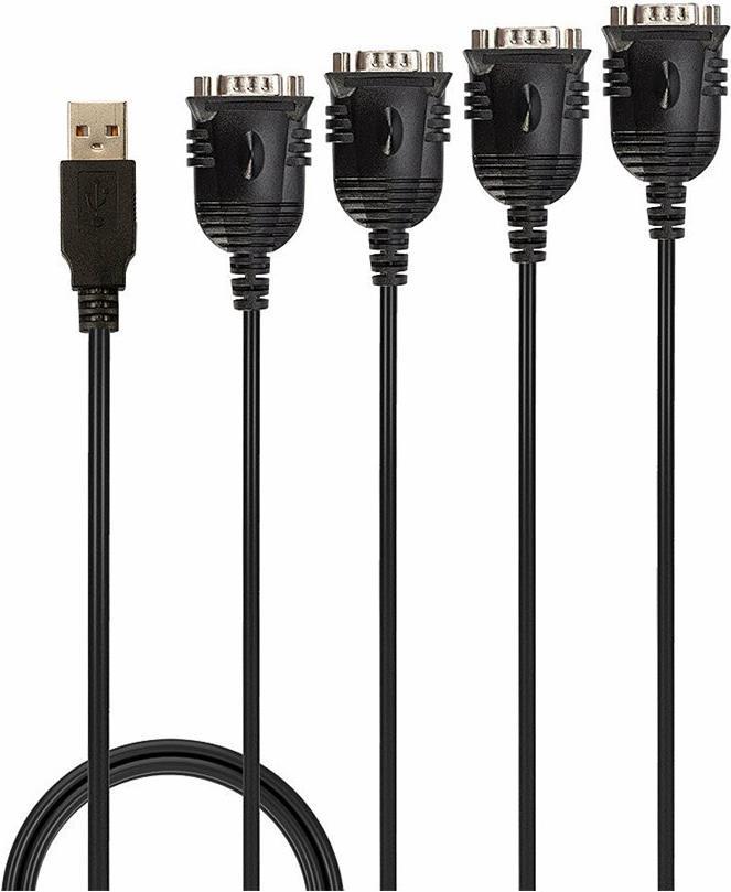 Flexibler Anschluss von vier seriellen Geräten an einen USB Port Typ A.