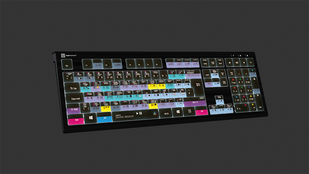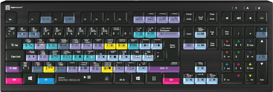 Logickeyboard Davinci Resolve 17 Astra 2 - Tastatur - hintergrundbeleuchtet - USB - QWERTY - GB - Tastenschalter: Scissor-Switch - Schwarz (LKB-RESB-A2PC-UK)