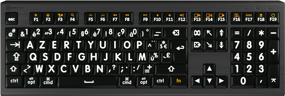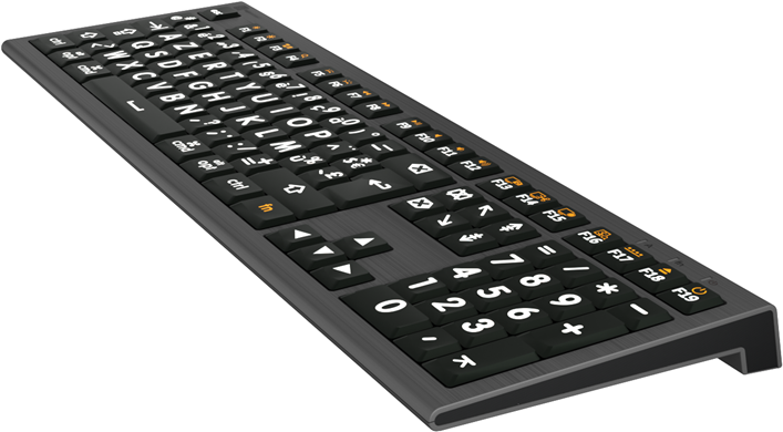 Die dedizierte Largeprint-Tastatur in Weiß-auf-Schwarz verfügt über eine verbesserte Beschriftung von Buchstaben, Zahlen und Symbolen, die Sie auch auf einer herkömmlichen, für Sehbehinderte ausgelegten Tastatur finden. Die Tastatur ist einfach anzuschließen und erfordert keine Software-Installation.