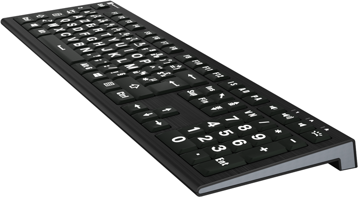 Die dedizierte Largeprint-Tastatur in Weiß-auf-Schwarz verfügt über eine verbesserte Beschriftung von Buchstaben, Zahlen und Symbolen, die Sie auch auf einer herkömmlichen, für Sehbehinderte ausgelegten Tastatur finden. Die Tastatur ist einfach anzuschließen und erfordert keine Software-Installation.