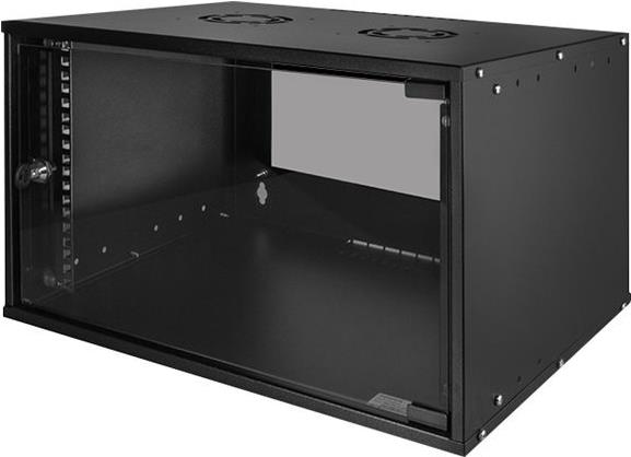 LogiLink 48,30cm (19") Wandverteiler ECO, 6 HE, montiert, schwarz (RAL 9005), aus 0,8 mm Stahlblech, Glastür mit Zylinder - 1 Stück (W06C55B)