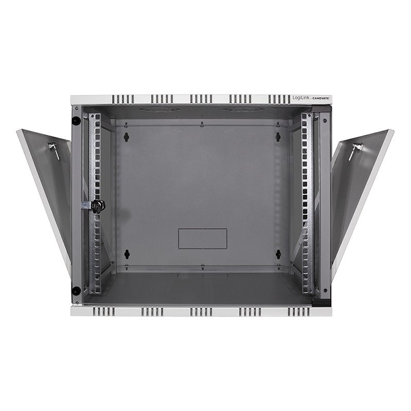 LogiLink 48,30cm (19") Wandverteiler, unmontiert, 9 HE, lichtgrau (RAL7035), Stahlrahmen, Glastür mit Zylinderschloss, - 1 Stück (W09A54G)