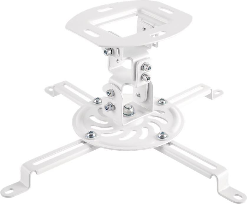 Die LogiLink Projektorhalterung besteht aus einer Aluminium-Konstruktion und hält bis zu 13,5 kg schwere Projektoren mit einem Durchmesser von 54-320 mm. Sie kann bis zu -15°/+15° geneigt und geschwenkt, ebenso wie 360° gedreht werden.