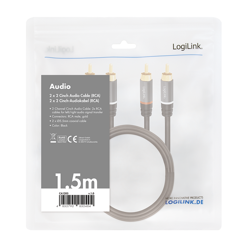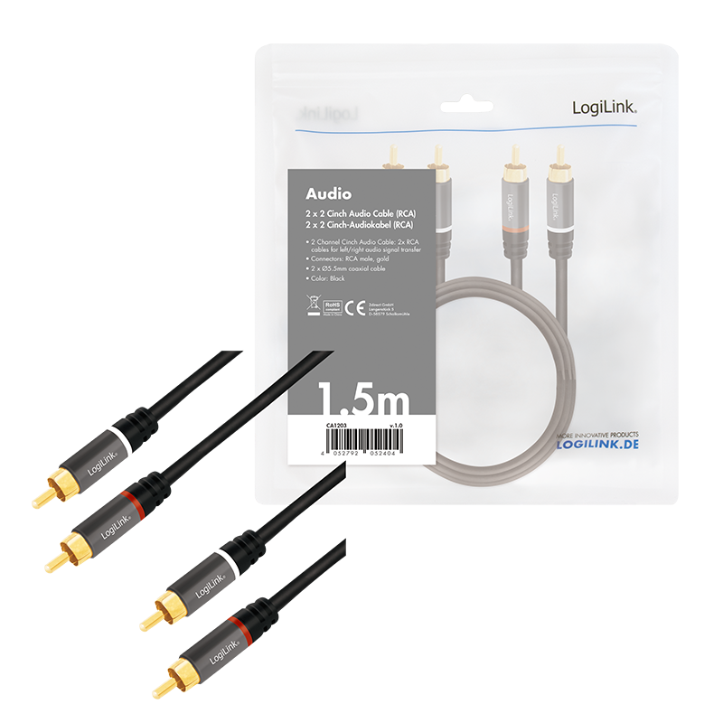 LogiLink CA1203 Audio-Kabel 1,5 m 2 x RCA Schwarz (CA1203)