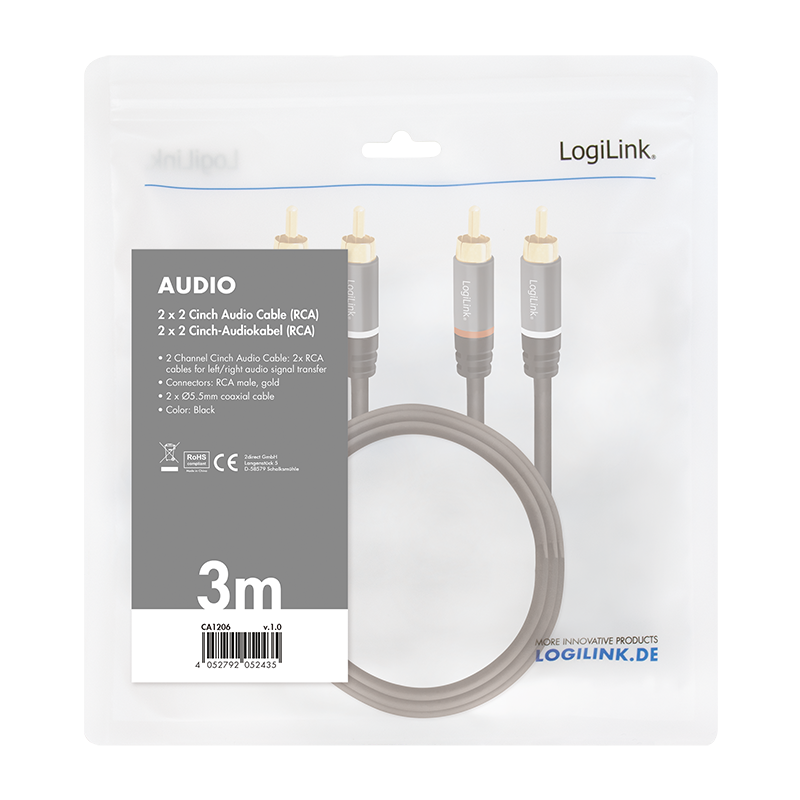 LogiLink CA1206 Audio-Kabel 3 m 2 x RCA Schwarz (CA1206)