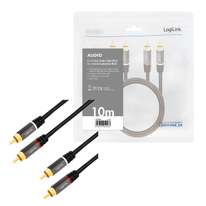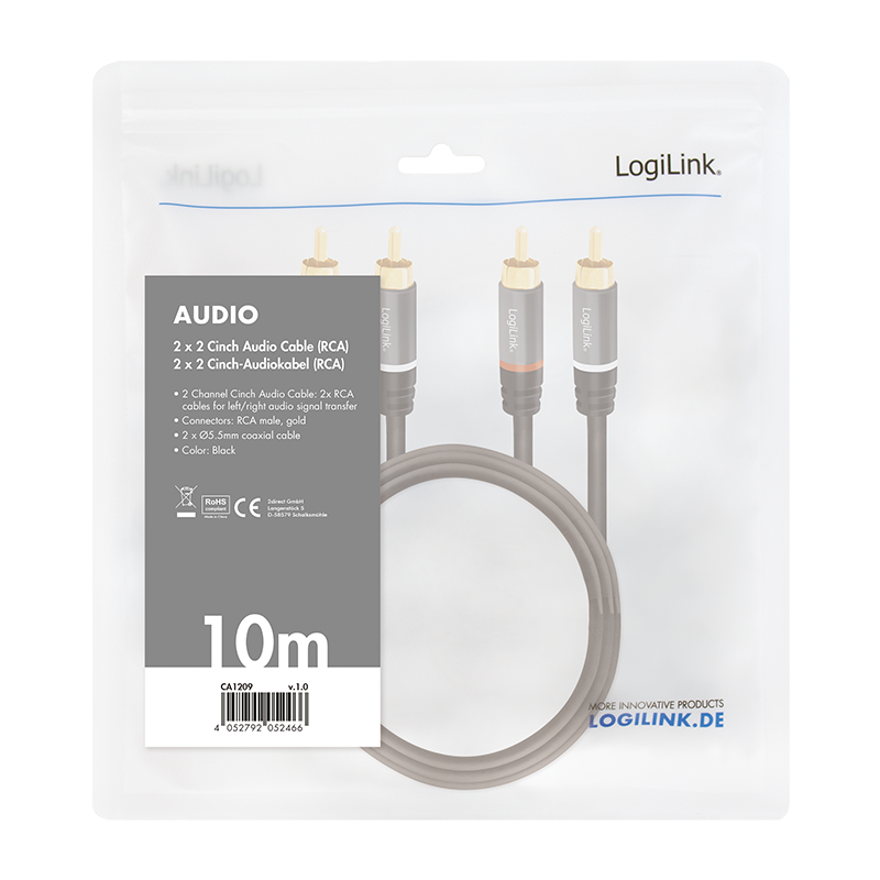 LogiLink CA1209 Audio-Kabel 10 m 2 x RCA Schwarz (CA1209)