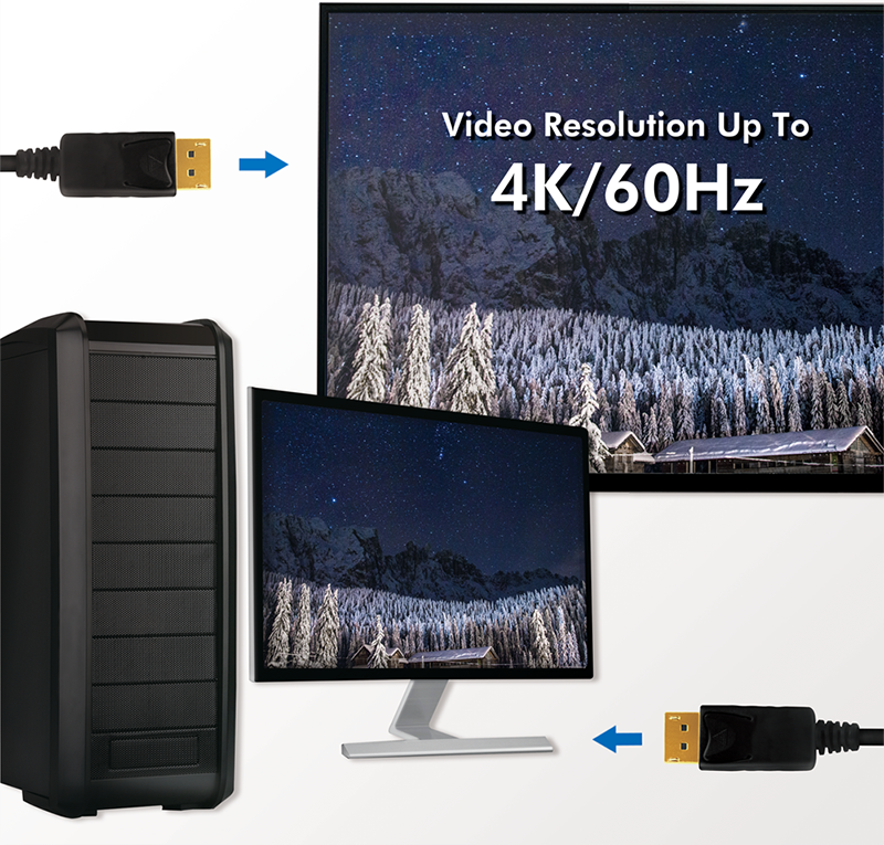 Erleben Sie Audio und Video in voller Ultra HD Qualität und mit bester Soundübertragung. Mit dem DisplayPort-Anschlusskabel können Sie einen DisplayPort mit einem weiteren DisplayPort verbinden. Häufig genutzt beim Verbinden von externen Monitoren oder Projektoren mit einem entsprechenden Computer oder Notebook.