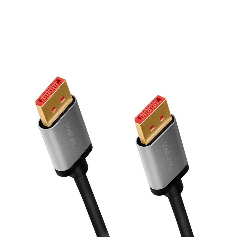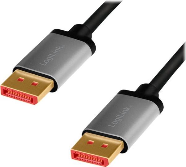LogiLink - DisplayPort-Kabel - DisplayPort (M) bis DisplayPort (M) - DisplayPort 1.4 - 2 m - Dolby DTS-HD Master Audio-Unterstützung, Dolby TrueHD-Unterstützung, Support von 8K 60 Hz - Grau, Schwarz