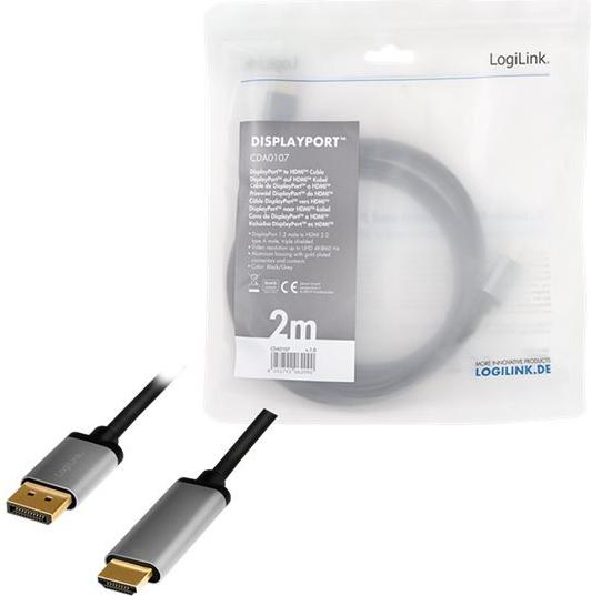 Logilink - Adapterkabel - DisplayPort männlich zu HDMI männlich - 2 m - Dreifachisolierung - Schwarz - unterstützt 4K 60 Hz (3840 x 2160) (CDA0107)